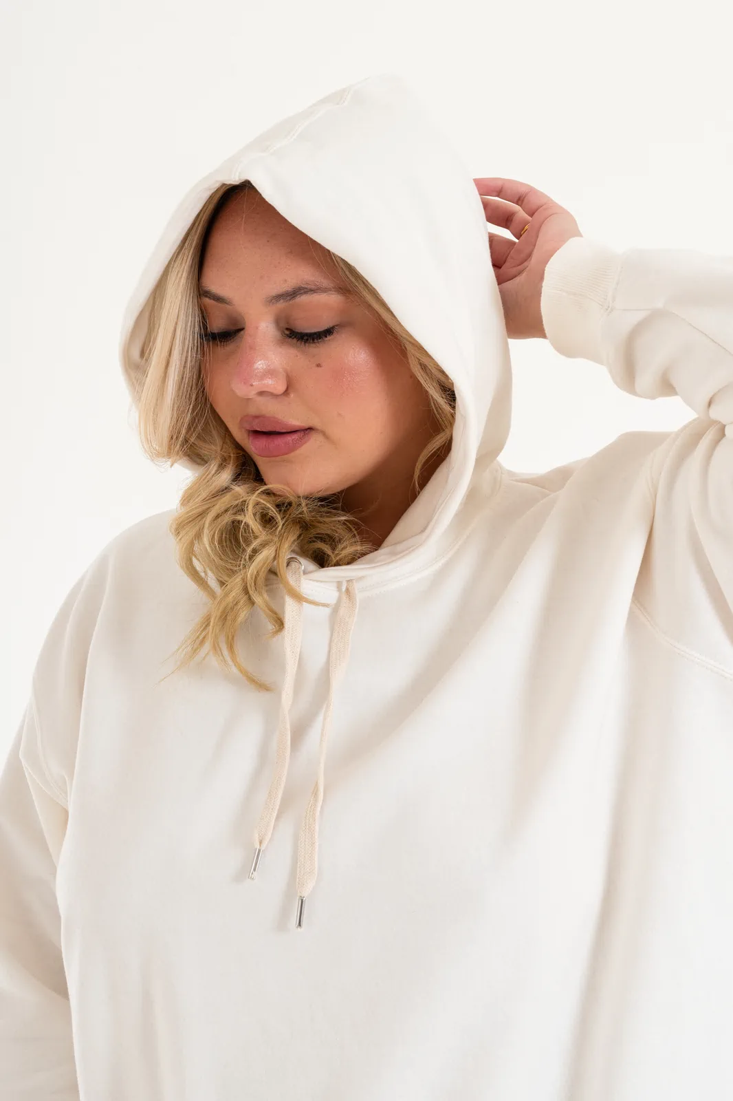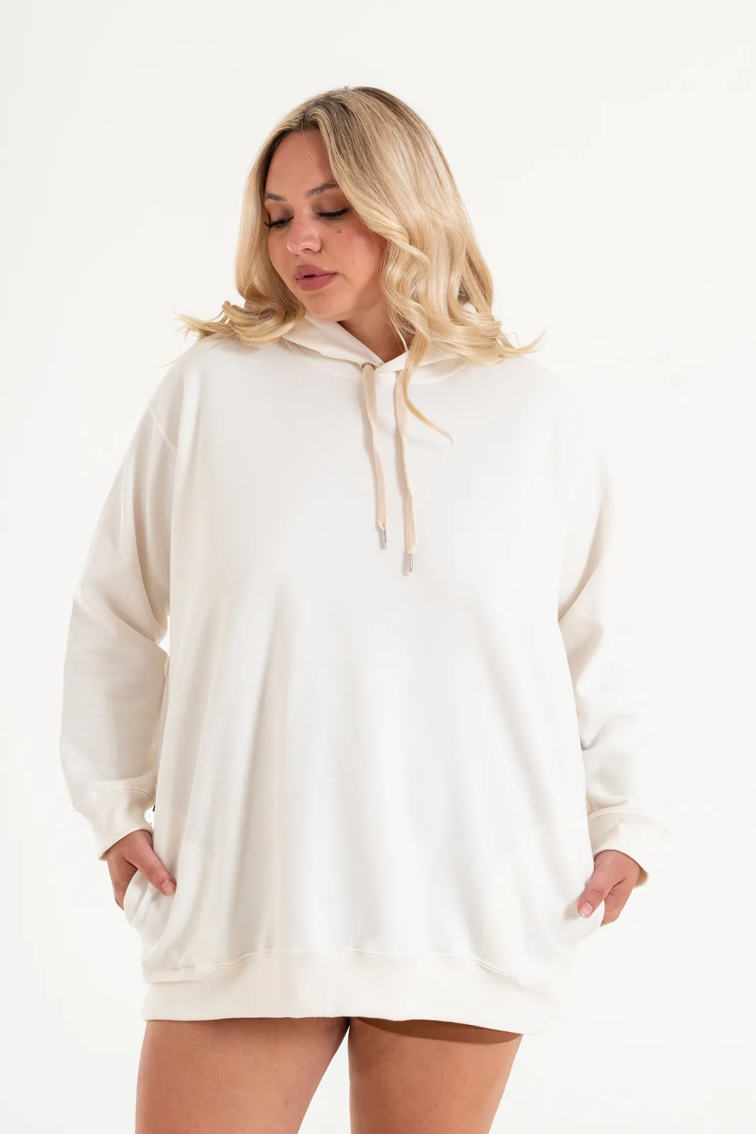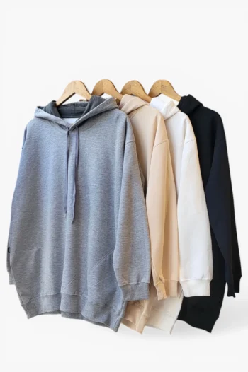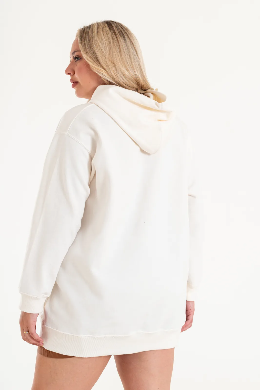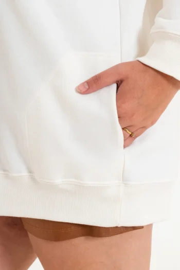 Buzo canguro oversize con recortes de bolsillos por fuera y con capucha forrada