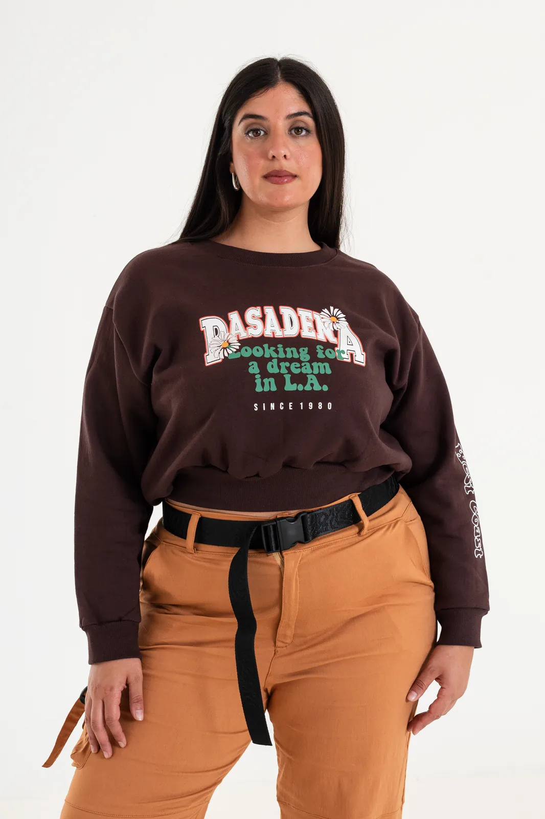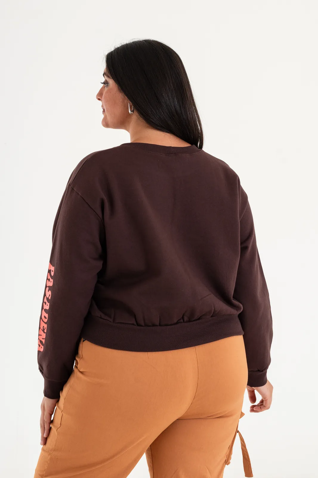 Buzo corte a la cintura, estampado en frente y manga