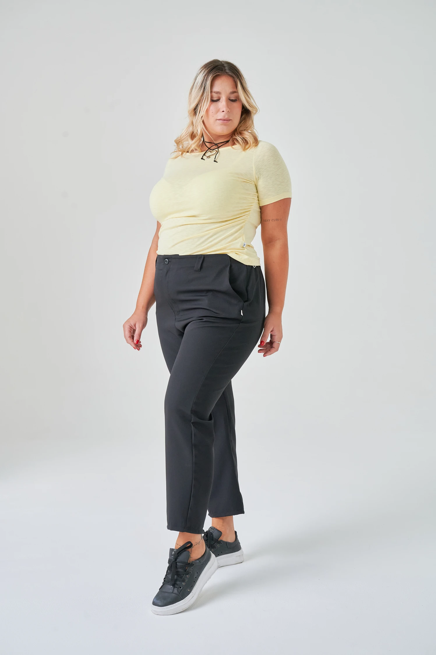 Pantalon sastrero tiro alto, medio elastico en cintura con bolsillos