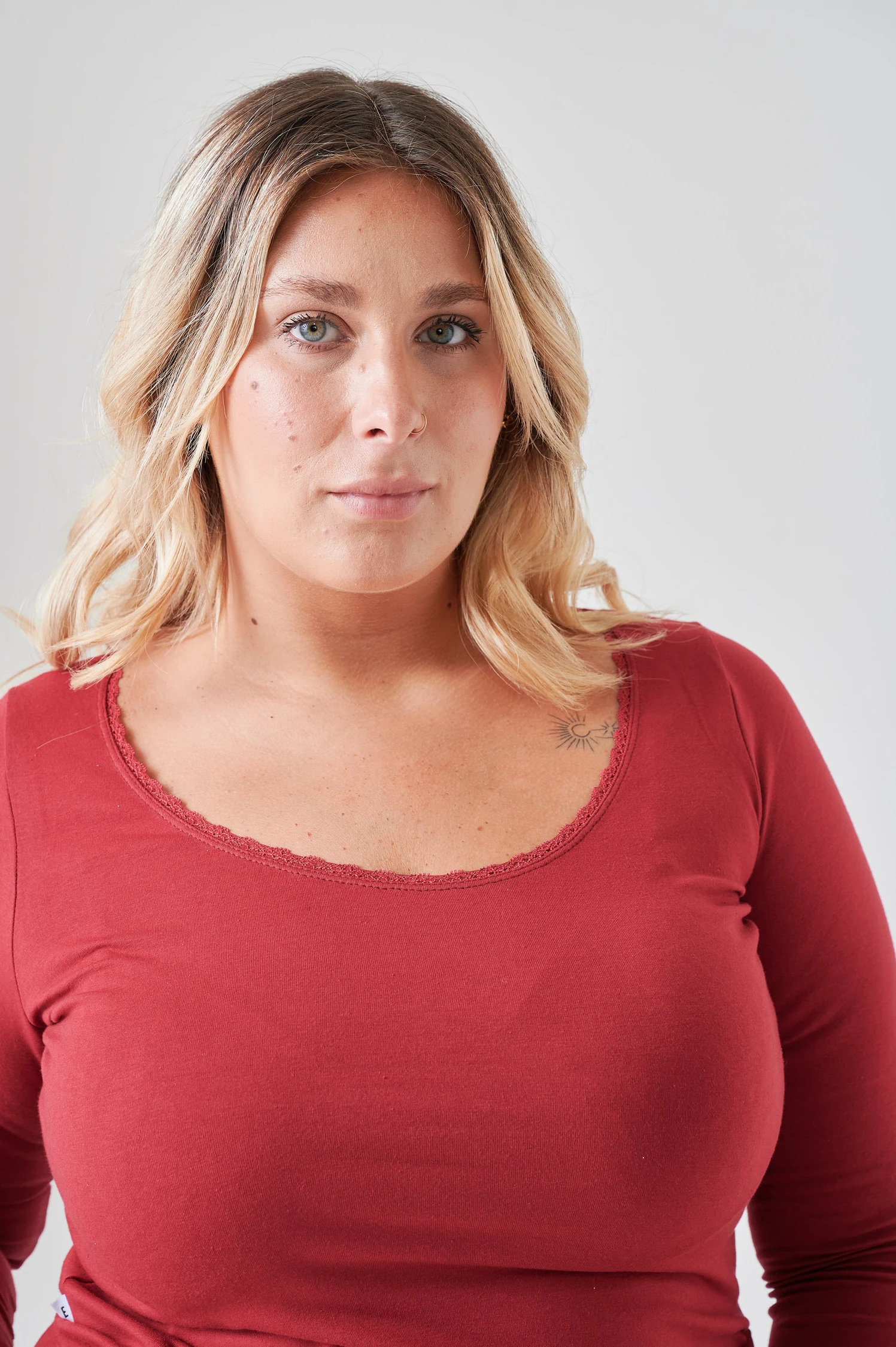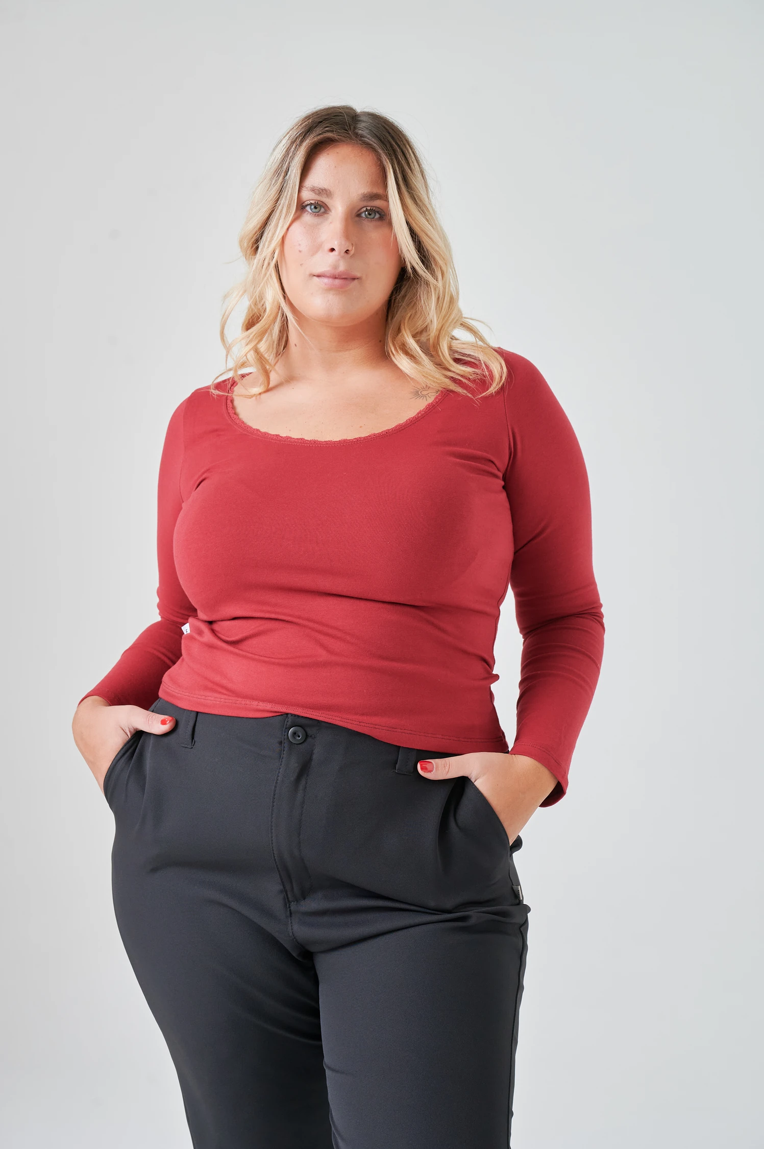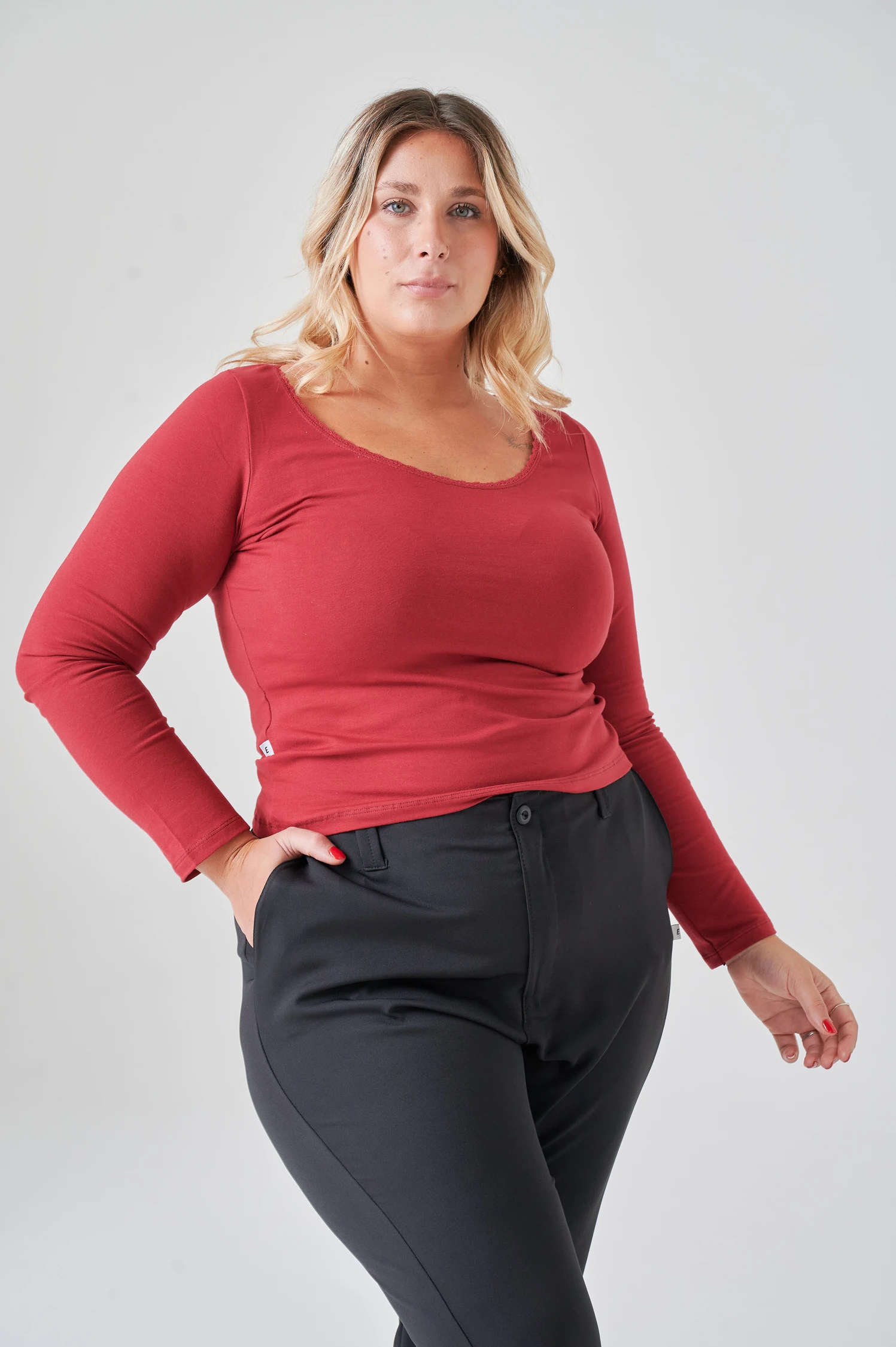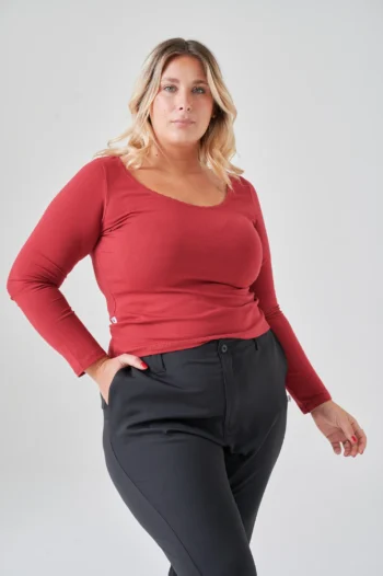 Remera de algodón con lycra de mangas largas con puntilla en el escote. El detalle de puntilla en el escote transforma una remera clásica en una pieza con personalidad. El algodón con lycra garantiza comodidad y adaptación al cuerpo durante todo el día.